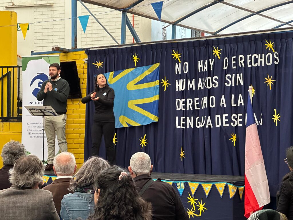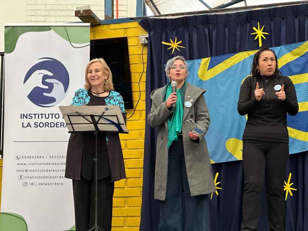 En el marco de esta celebración, el instituto de la Sordera conmemoró la semana, el día viernes 26 de septiembre junto a la municipalidad de San Joaquín. Estuvimos acompañados por diputadas de la República, autoridades de la municipalidad, miembros del directorio del Instituto, representantes de la congregación del Verbo Divino, centro de padres y madres, amigos, cuerpo docentes y estudiantes.